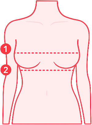 Meet losjes over de borst, meestal ter hoogte van de tepels. Deze meting gebruik je om de cupmaat te bepalen.